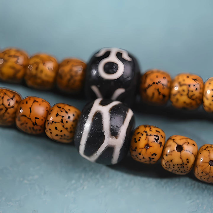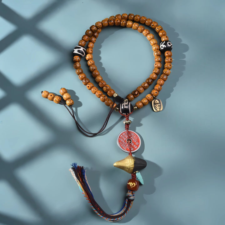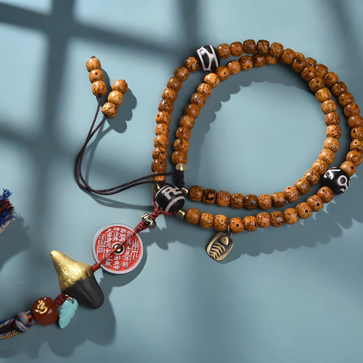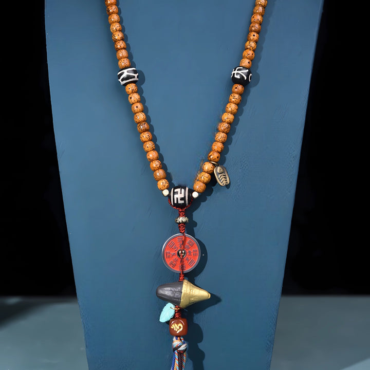 With Bodhi seeds for wisdom, various Dzi beads for fortune, protection, and auspiciousness, and turquoise for balance, this sacred piece becomes both a spiritual shield and a collector’s heirloom of Tibetan culture.