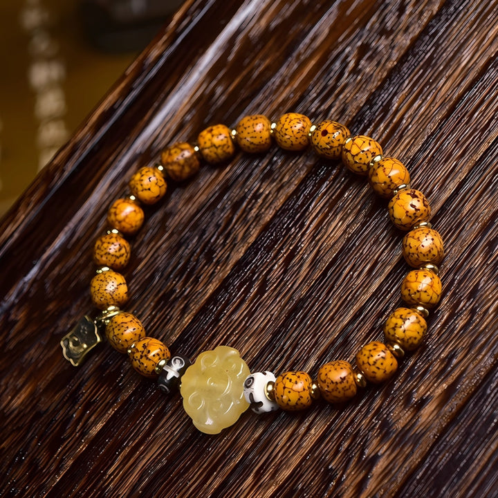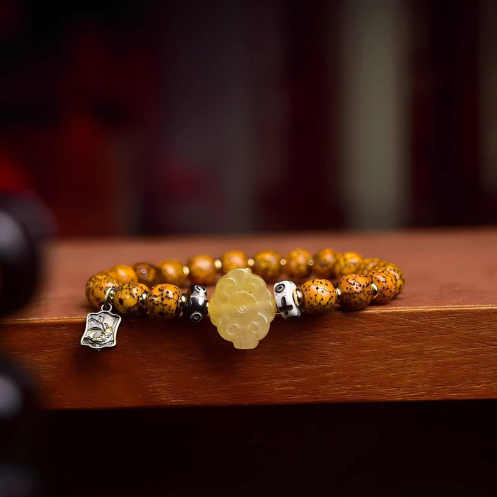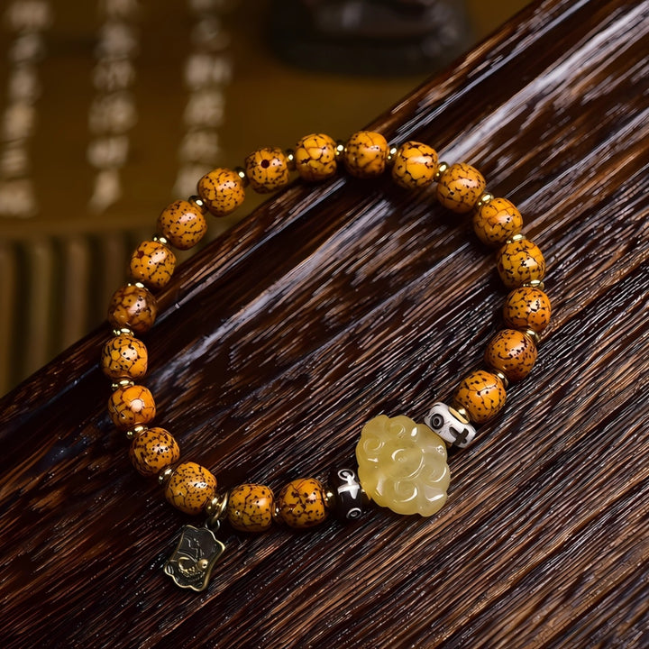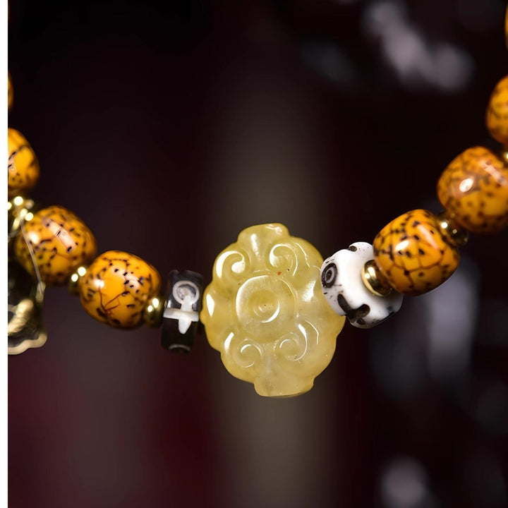 This handcrafted mala symbolizes wisdom, peace, and resilience. The aged Bodhi seeds represent inner awakening and clarity, while the bronze and agate details add balance and grounding energy. A piece designed not just for beauty, but also for mindful living and spiritual empowerment.