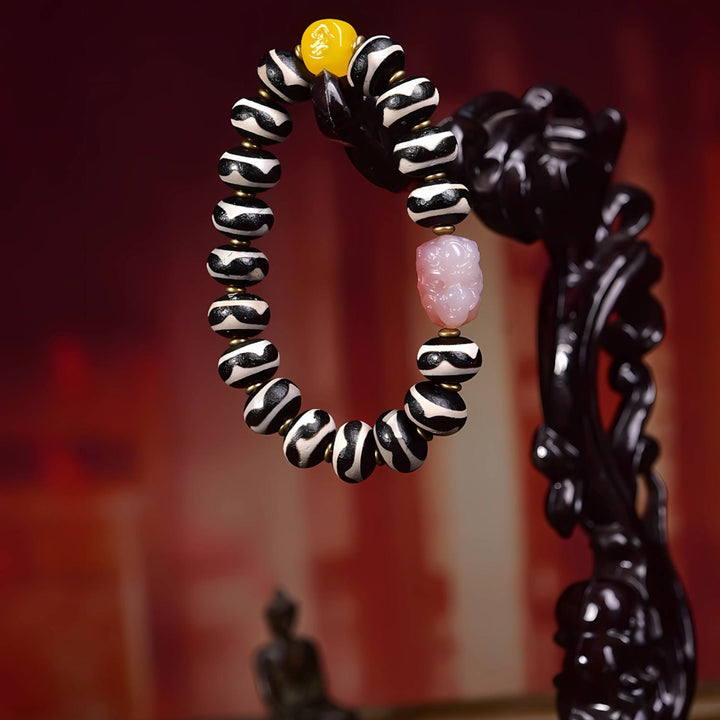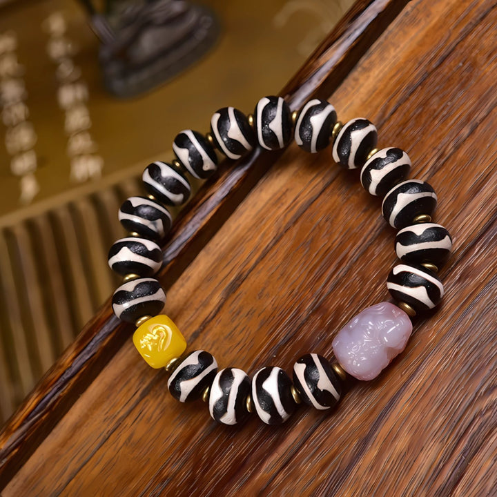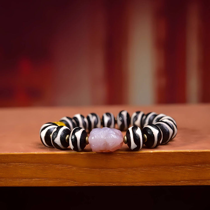 • Tiger Tooth Dzi Bead (14 × 10 mm) — renowned for its fierce and protective energy