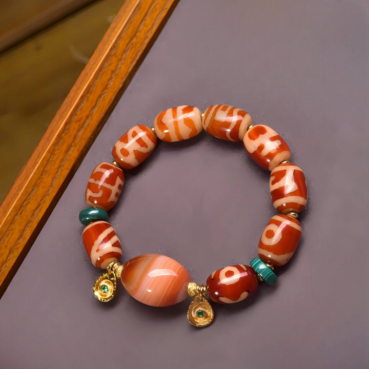 Each Dzi bead is infused with centuries of cultural devotion, making this piece not just a bracelet, but a rare spiritual powerhouse that embodies Tibetan heritage and sacred energy.