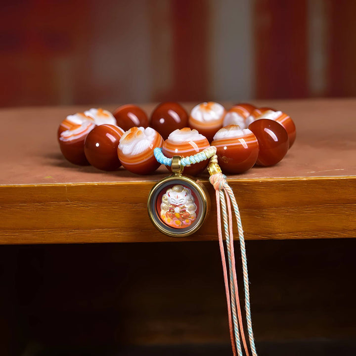 Medicine Master Fox Spirit Dzi Bead (16 mm) — hand-carved by master artisans, with excellent polish and vibrant coloration