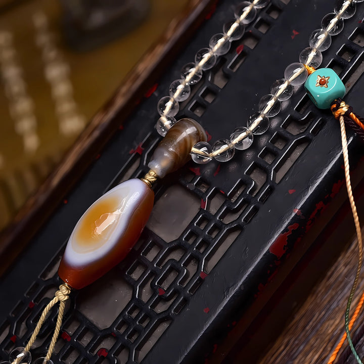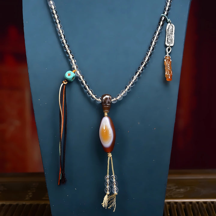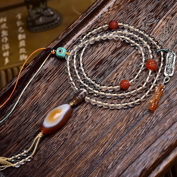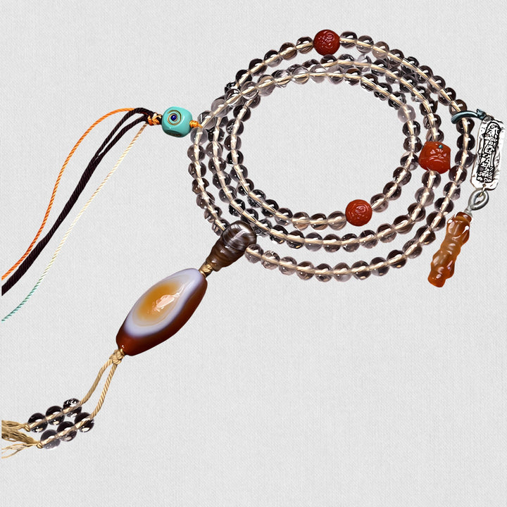 Combined with crystal for clarity, agate for grounding and protection, and turquoise for cosmic balance, this mala is both a sacred spiritual treasure and a collector’s heirloom.