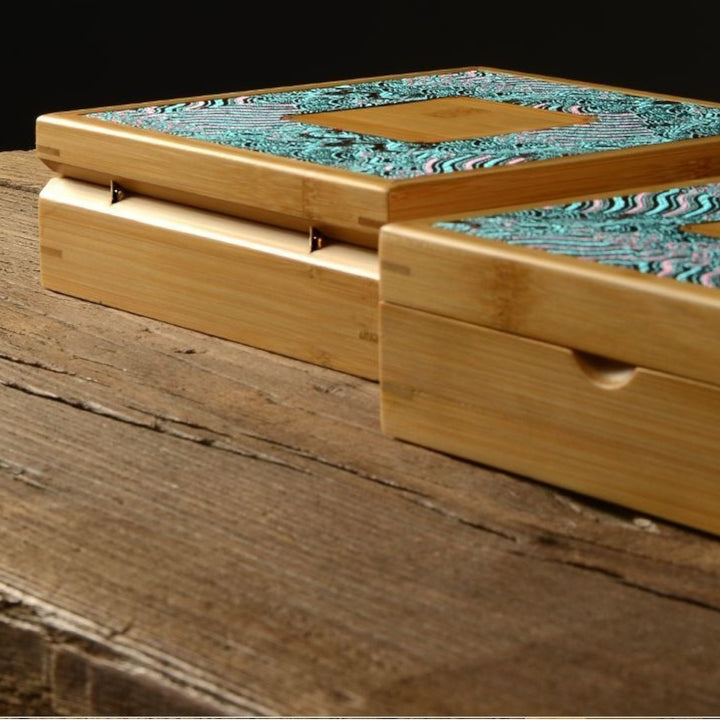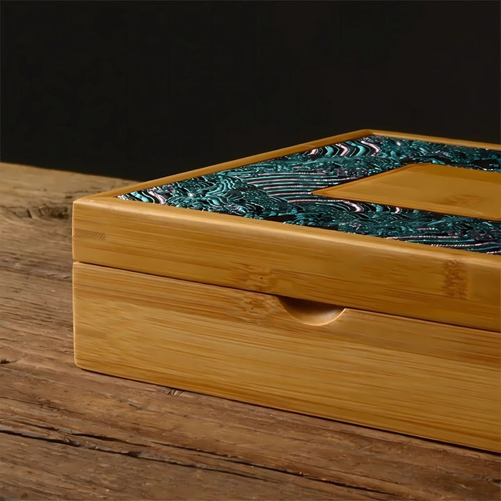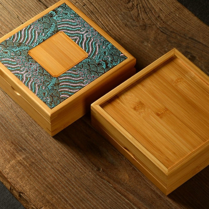 Sacred Bamboo Gift Box with Embroidered Lid – Protection & Purification for Meditation Jewelry