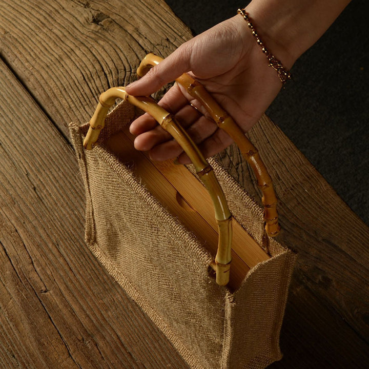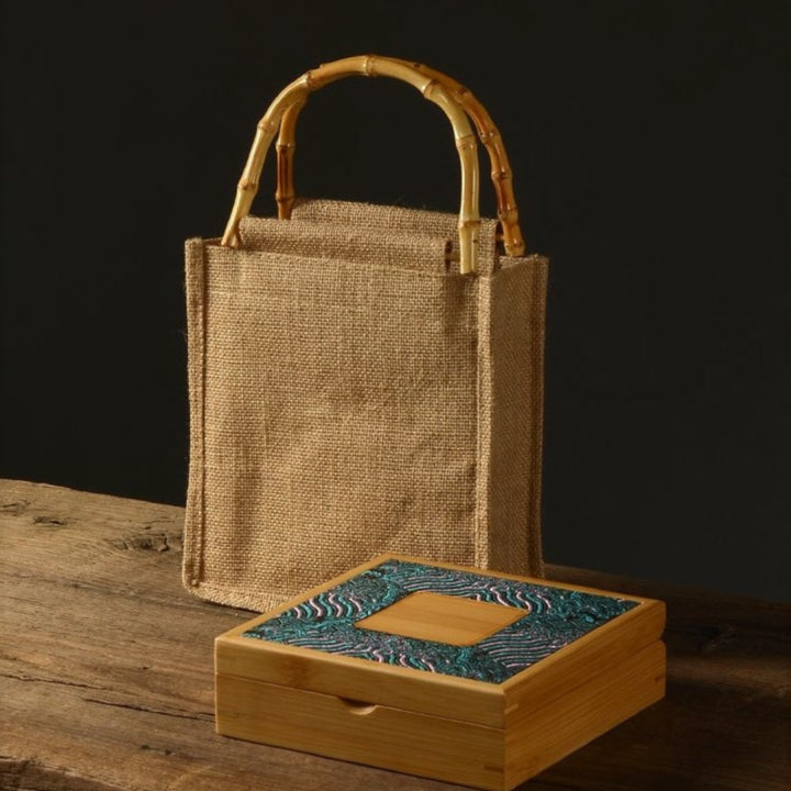 Bamboo Handle Cloth Bag: 9 × 9 × 2.8 in