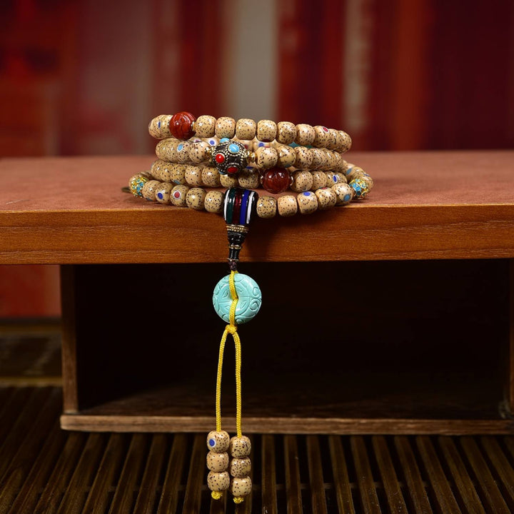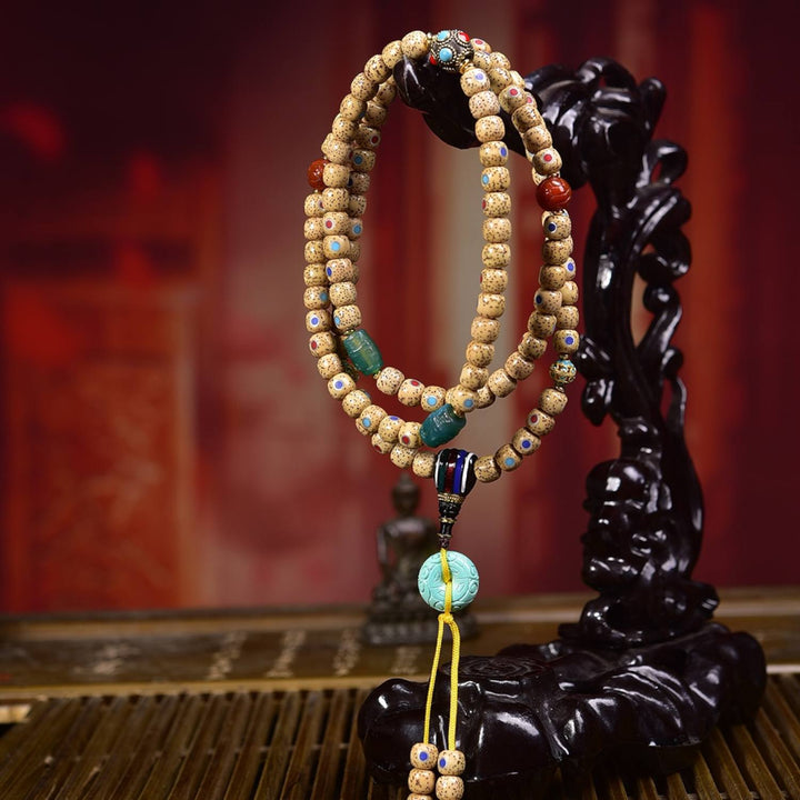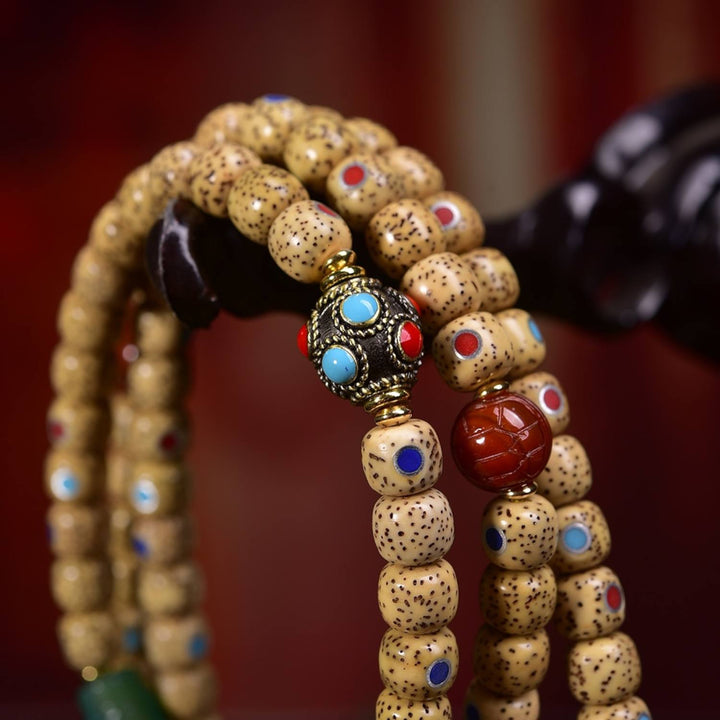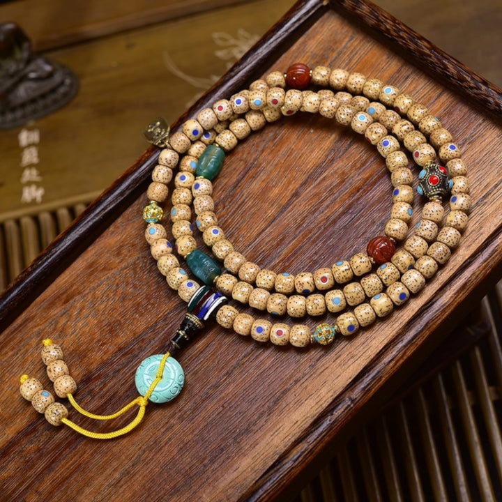 108 Beads — Multi-Gem Inlaid Antique Hainan Yuanbao Bodhi Seeds (Star-Moon Mala)