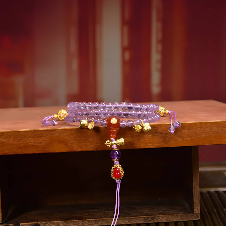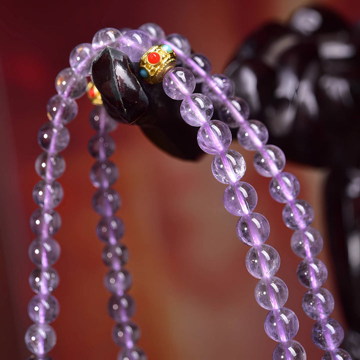 The Amethyst Mala is a powerful talisman of clarity, serenity, and prosperity. In Tibetan and spiritual practice, amethyst is believed to: