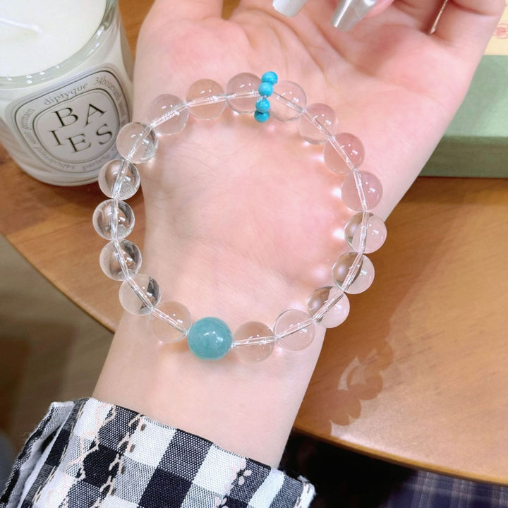 Natural White Crystal & Aquamarine Bracelet – Clarity and Tranquility