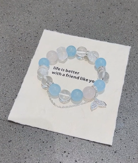 🌊 Mermaid Tail Bracelet – Aquamarine & Clear Quartz