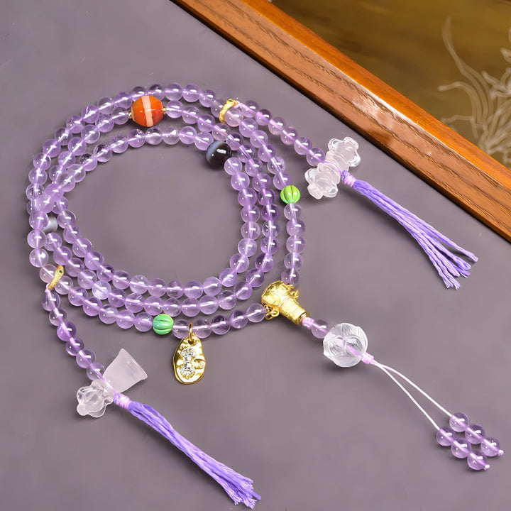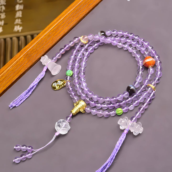 Natural Amethyst 108-Bead Mala — Dreamlike Violet Energy