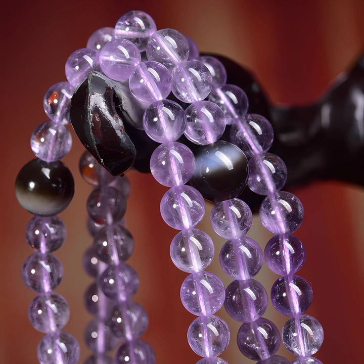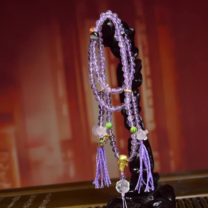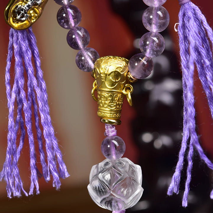 The Amethyst Mala is a talisman of serenity, wisdom, and prosperity. In Tibetan and spiritual traditions, amethyst is said to: