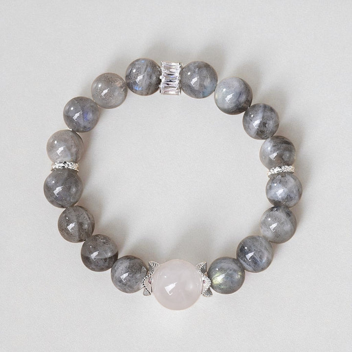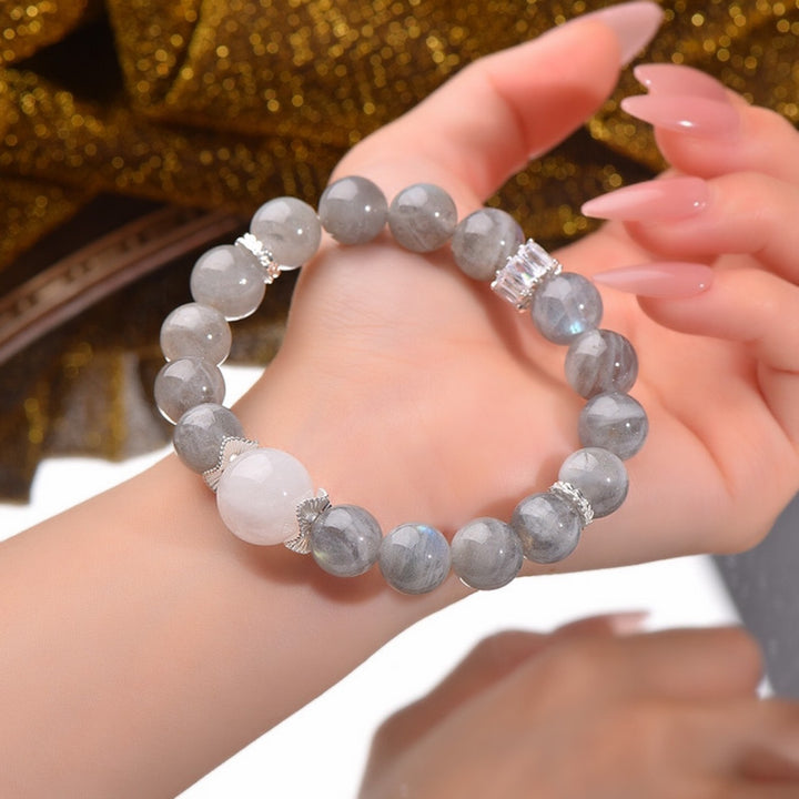 Made from natural gray moonstone and milky white crystal, combining subtle shimmer with soft elegance.