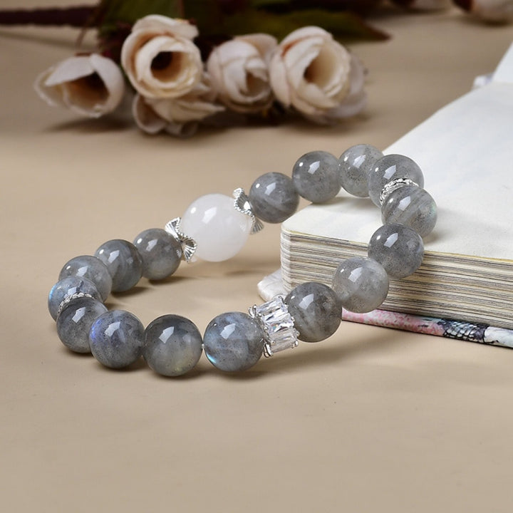 Natural Gray Moonstone & White Crystal Bracelet – Lunar Harmony