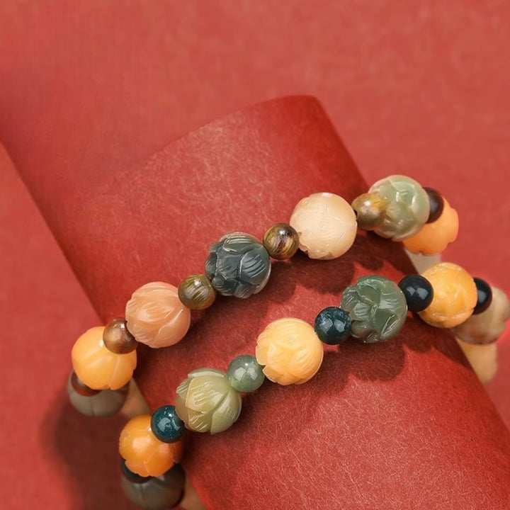 Natural Agate & Bodhi Lotus Bracelet – Abundance & Protection