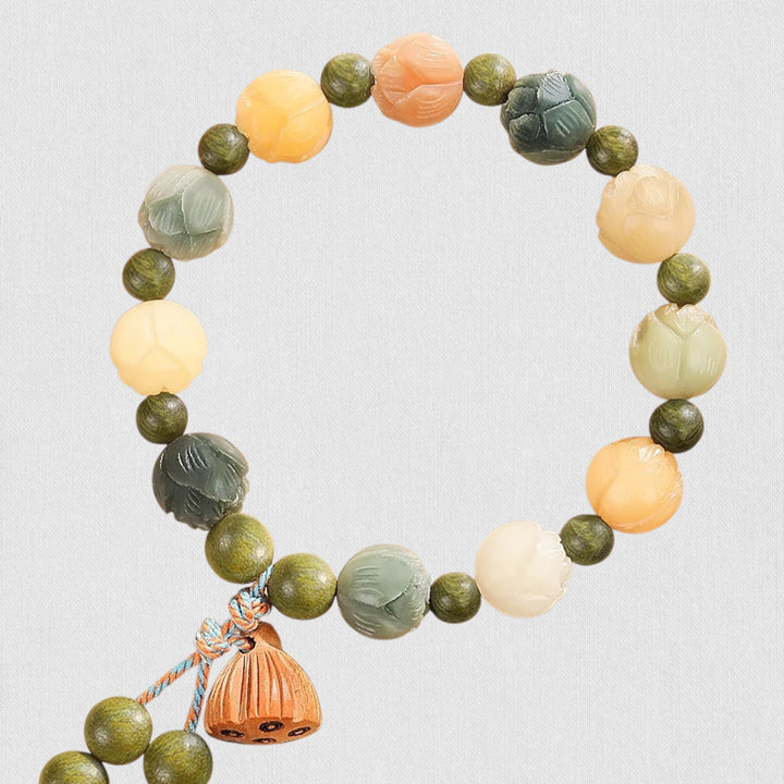 Material: Moss Agate, Bodhi Root Lotus, Green Sandalwood