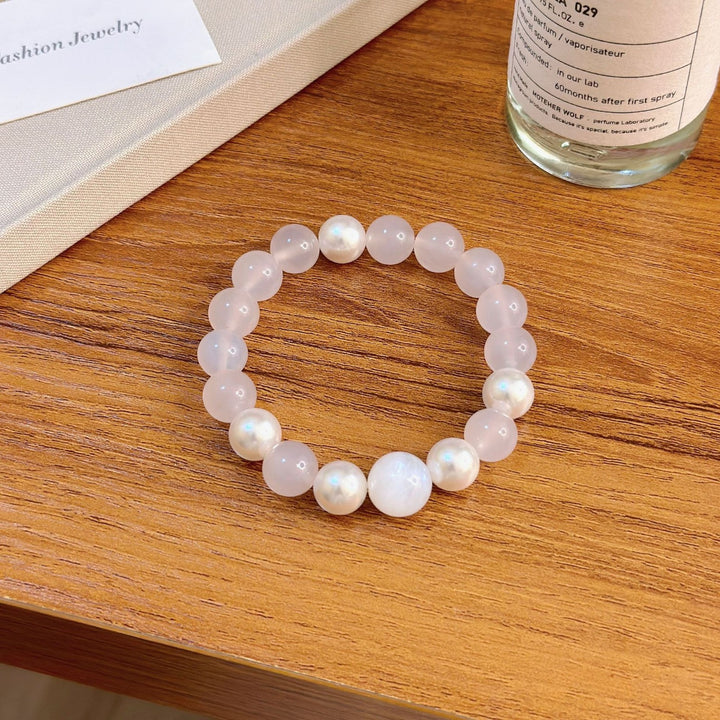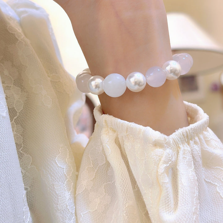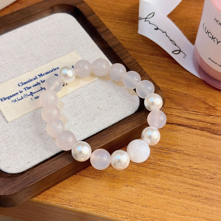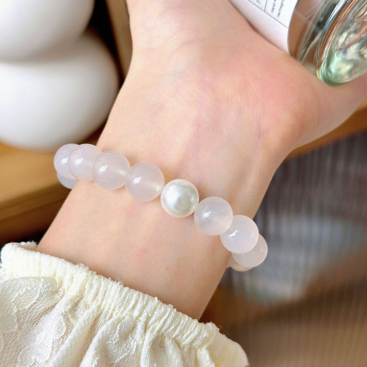 Natural White Agate & Pearl Bracelet – Pure Elegance