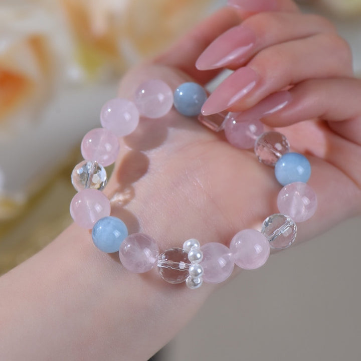 Natural Rose Quartz & Aquamarine Bracelet – Love and Serenity