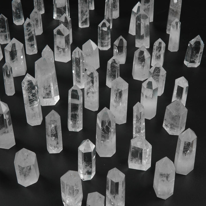 Each piece is transparent and luminous, with natural inclusions that make every tower unique.