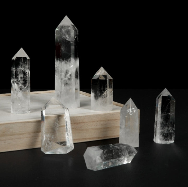 Natural Clear Quartz Tower – Hand-Carved Six-Sided Crystal Point