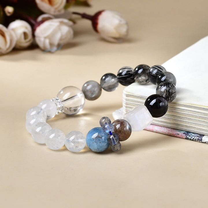 Natural Tourmalinated Quartz & Aquamarine Bracelet – Balance of Light & Shadow