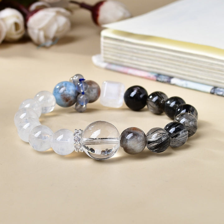 Material: Tourmalinated Quartz, White Crystal, Aquamarine, Moonstone