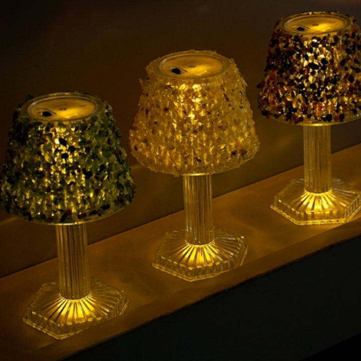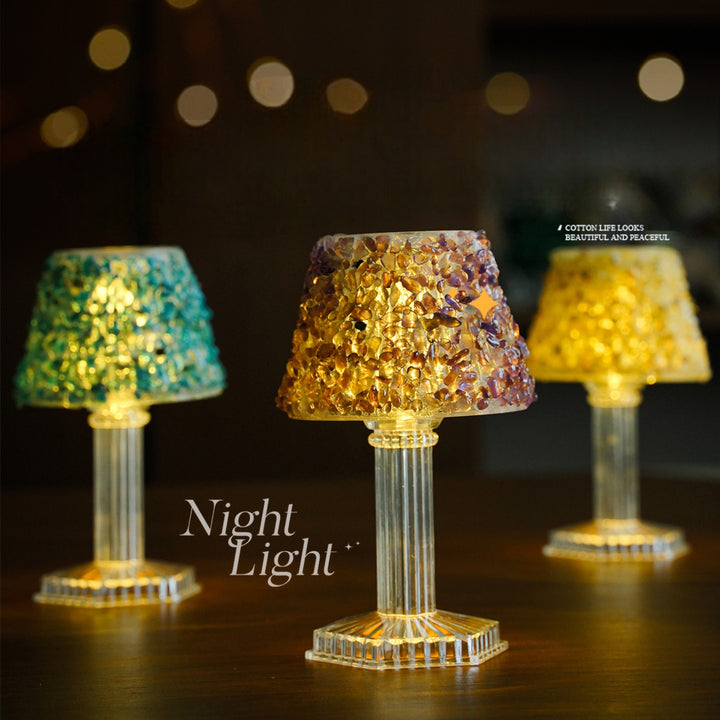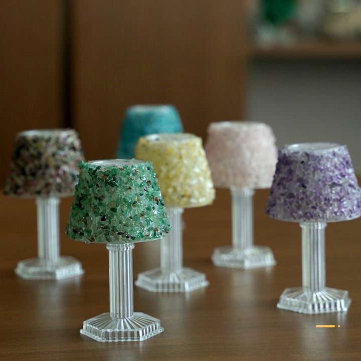 Bring the power of natural crystals into your home with this hand-polished energy stone lamp. Each lamp is crafted from carefully selected raw crystals, cut and polished into glowing fragments, then meticulously set onto the lamp base. When lit, the lamp radiates not only light but also the ancient beauty and energy of crystals.
