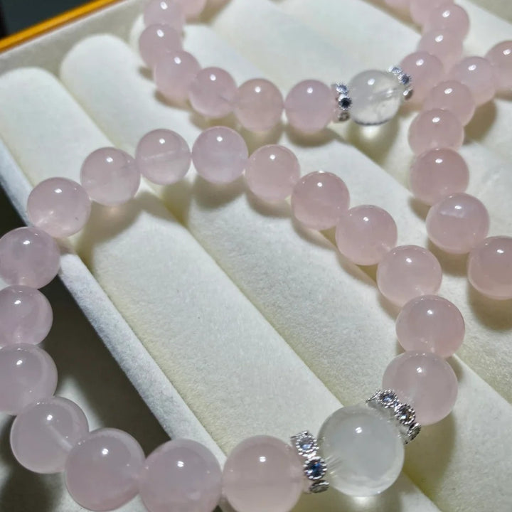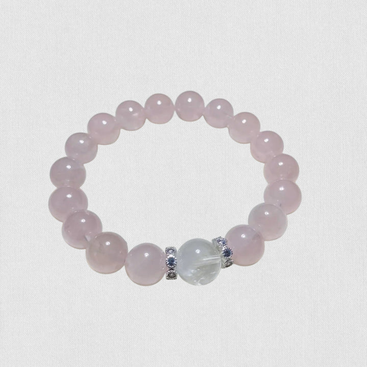 Natural Rose Quartz Bracelet with White Crystal – Gentle Elegance