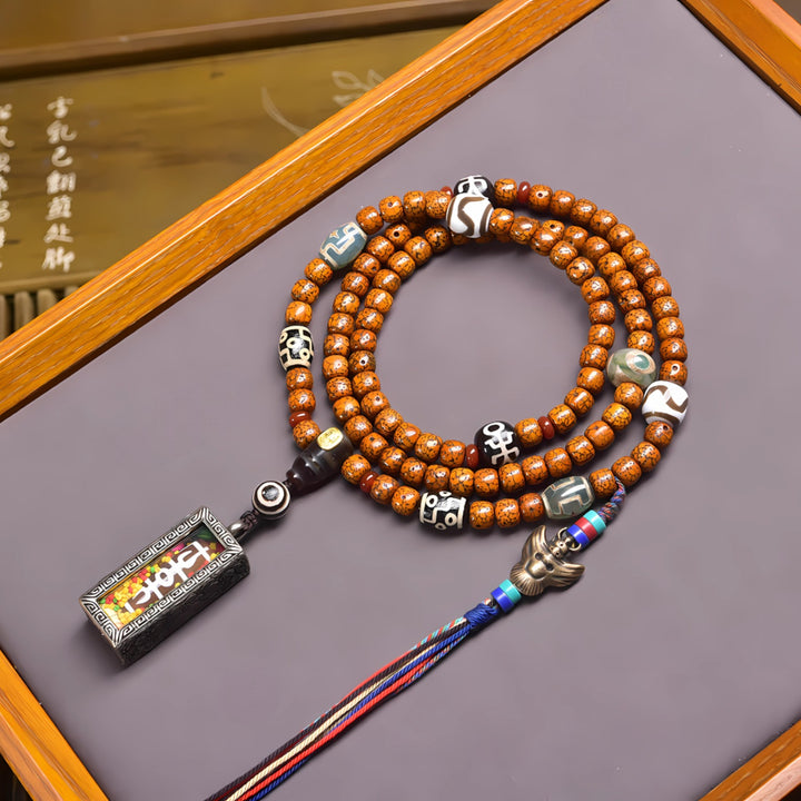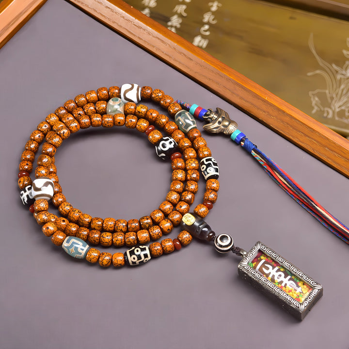 The Star-Moon Bodhi mala is a sacred talisman of wisdom and devotion, carrying centuries of symbolic meaning. In Tibetan tradition, its pairing with multiple Dzi beads creates a powerful combination: