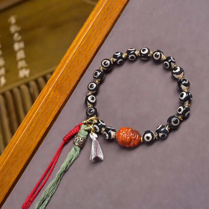 Three-Eyed Buddha Dzi Bead (8 mm) — highly auspicious talisman, symbolizing wisdom and fulfillment