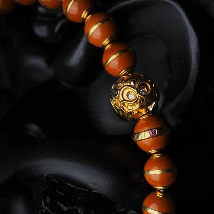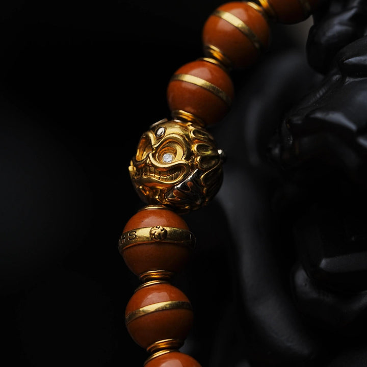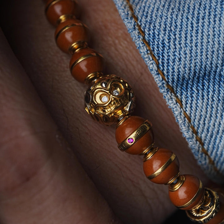 A celebration of pure form, this bracelet brings together flawlessly rounded beads, accentuated by a hand-crafted 22K solid gold centerpiece. The symmetry of round meeting round creates a visual rhythm that exudes balance, refinement, and quiet power.