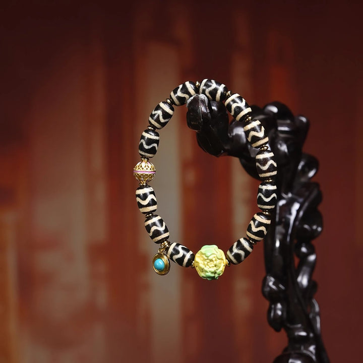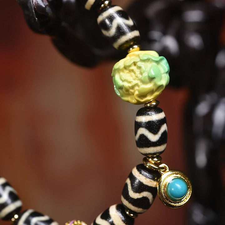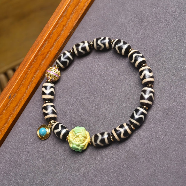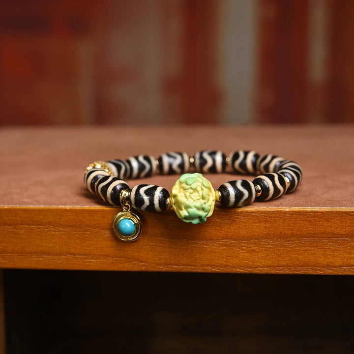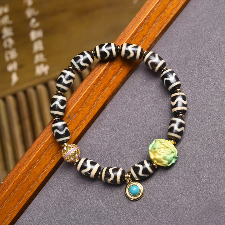 Water Wave Dzi Bead — Turquoise Lotus & Turquoise Spacer