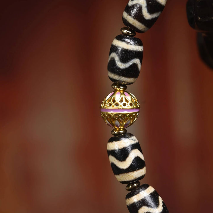Water Wave Dzi bead (12 × 8 mm) — traditionally believed to harmonize water energy; in modern living environments where natural water flow is scarce, it is said to help balance the “metal-water” elements for prosperity